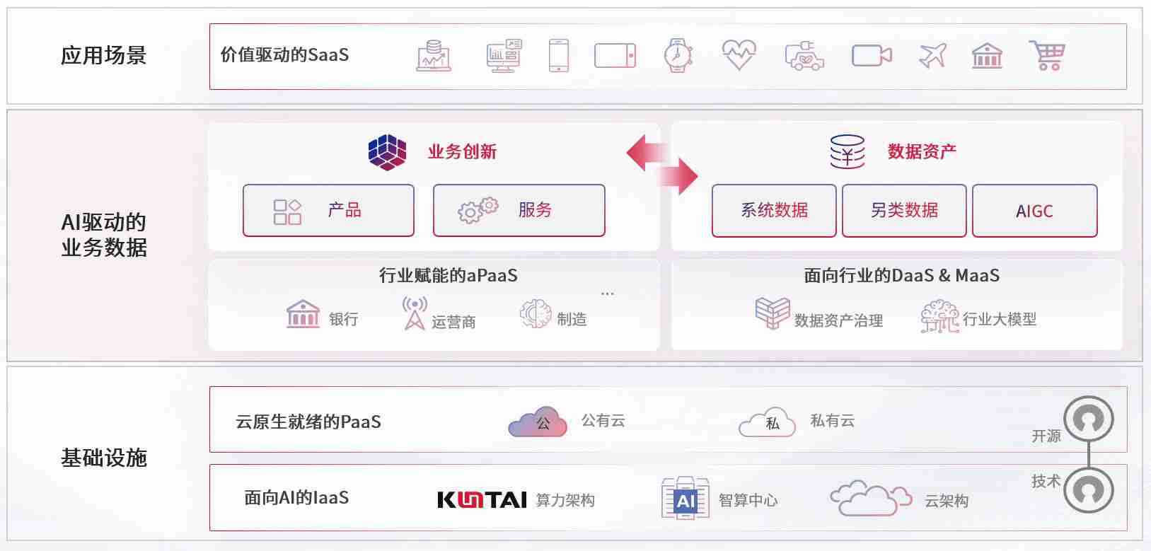 数字时代,,,,围绕企业数字化转型的关键要素,,,KDPAY数码开创性的提出数云融合战略和技术体系框架,,,着力在云原生、、、、数字原生、、AI原生和信创产业上架构产品和服务能力,,,,为处在不同数字化转型阶段的快消零售、、、汽车、、金融、、医疗、、、政企、、、教育、、运营商等行业客户提供泛在的敏捷IT能力和融合的数据驱动能力,,,构建跨界融合创新的数字业务场景和新业务模式,,,助力企业级客户建立面向未来的核心能力和竞争优势,,,,全面推动社会的数字化、、、、智能化转型升级。。